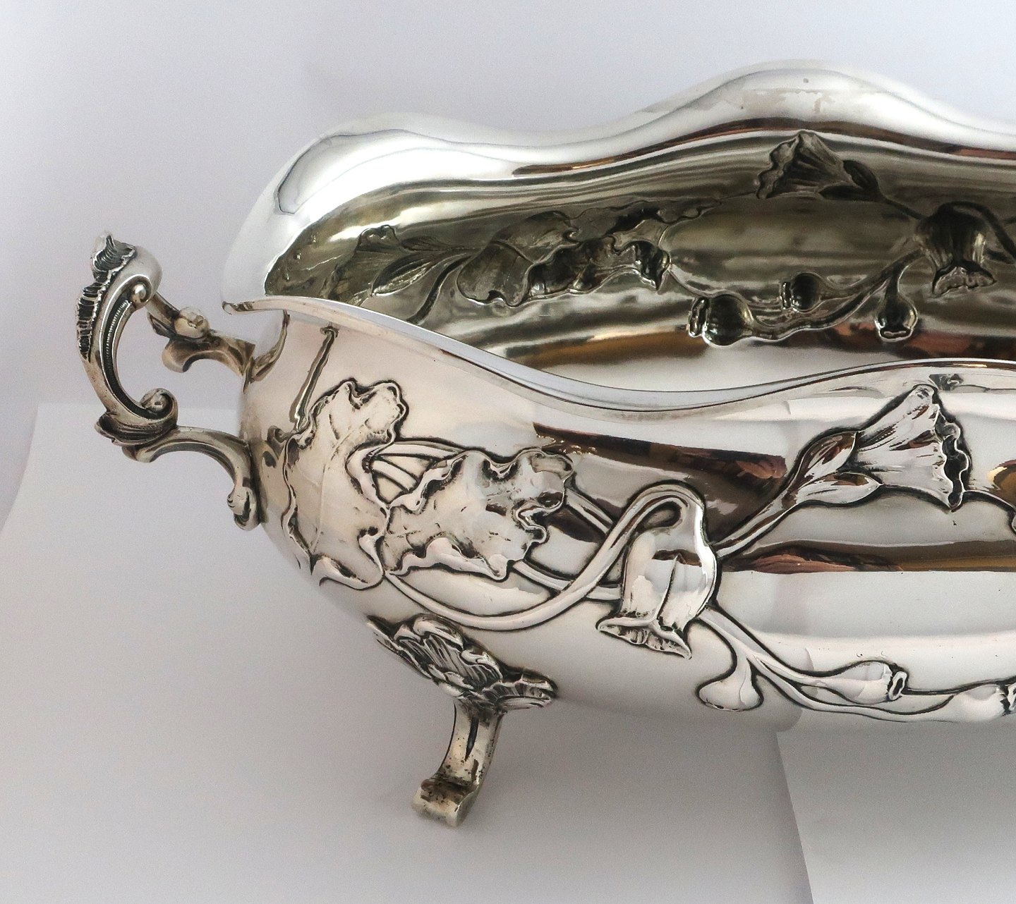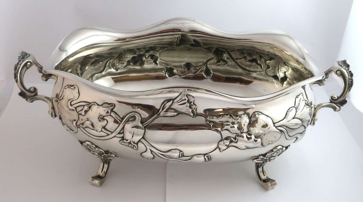 K. C. Hermann, Copenhagen. (KCH). Large silver jardiniere in art nouveau style (830). Length 45 cm. Width 23.5 cm. Height 15 cm. Produced 1907