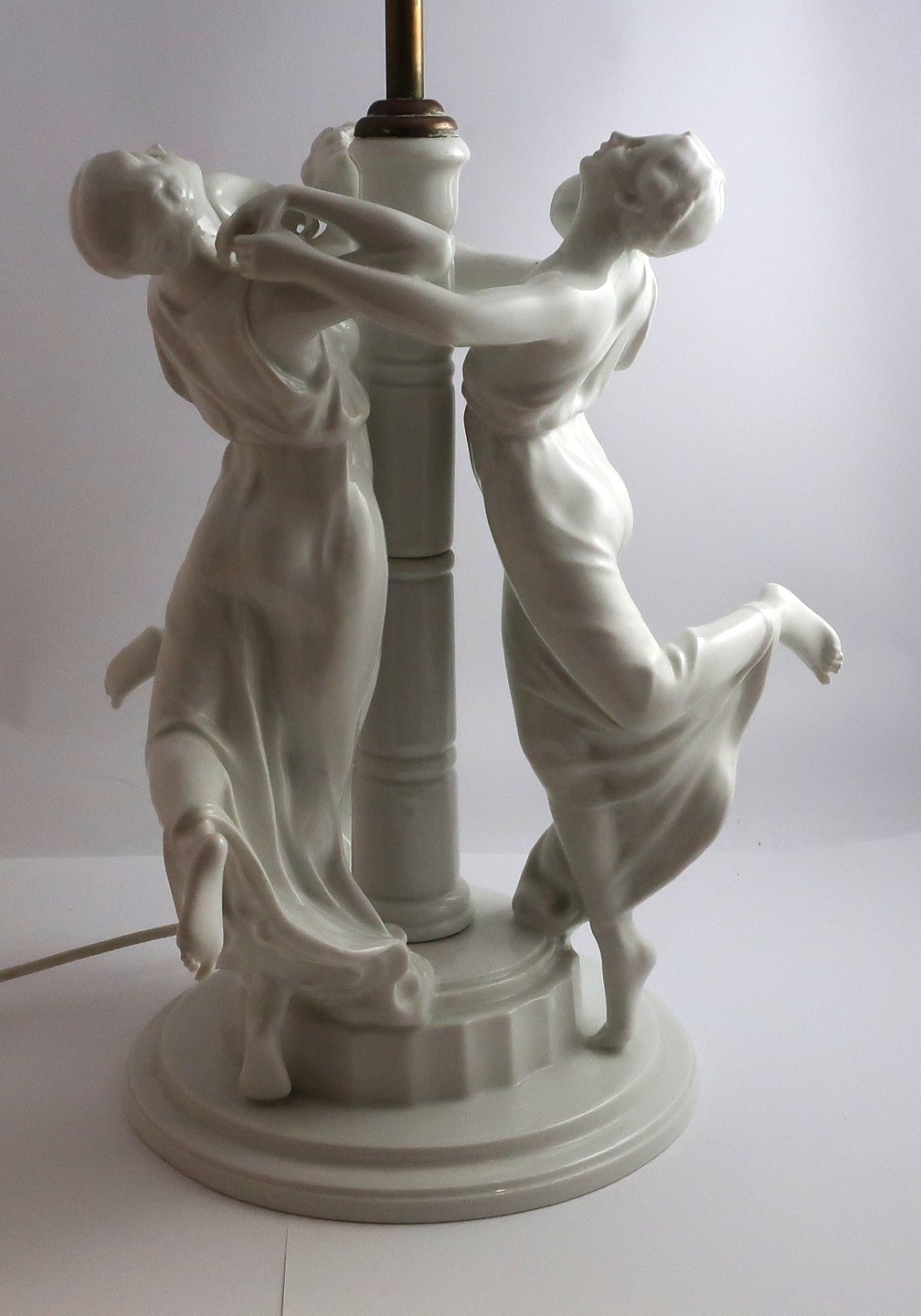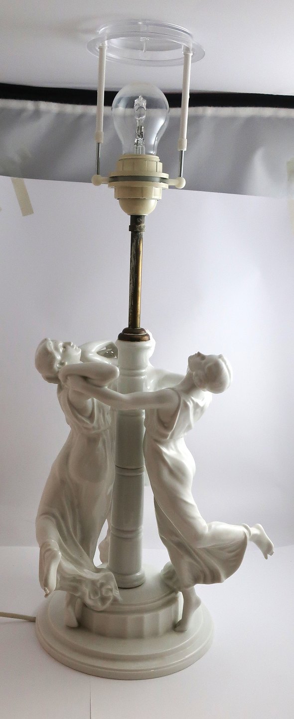 Rosenthal. Porcelænslampe med dansende piger. Porcelænshøjde 32,5 cm, og lampen er 60 cm total.