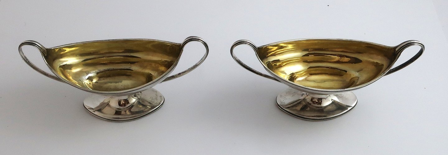 England. Henry Chawner, London (H C). Sterling salt cellar / spice cellar. Gilded inside. Height 7 cm. Width 14 cm. Produced 1787