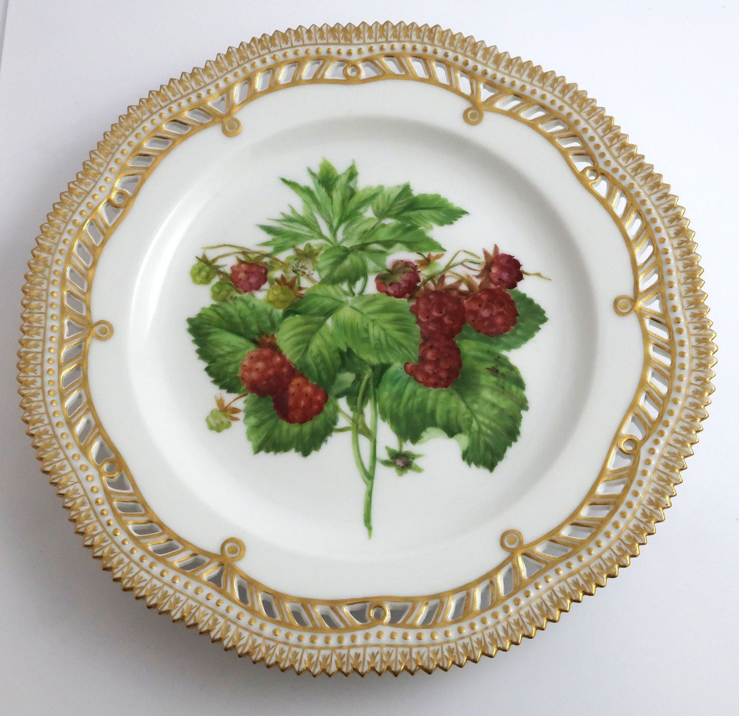 Royal Copenhagen, Flora Danica, frugttallerken. Frokost tallerken med gennemskåret bort. Design #429/3554. Diameter 23 cm. (1 sortering).