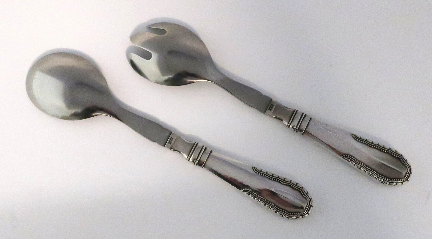 Georg Jensen. Nordisk. Sterling salatsæt med stål (925). Længde 21,5 cm. Produceret 1933-1945.