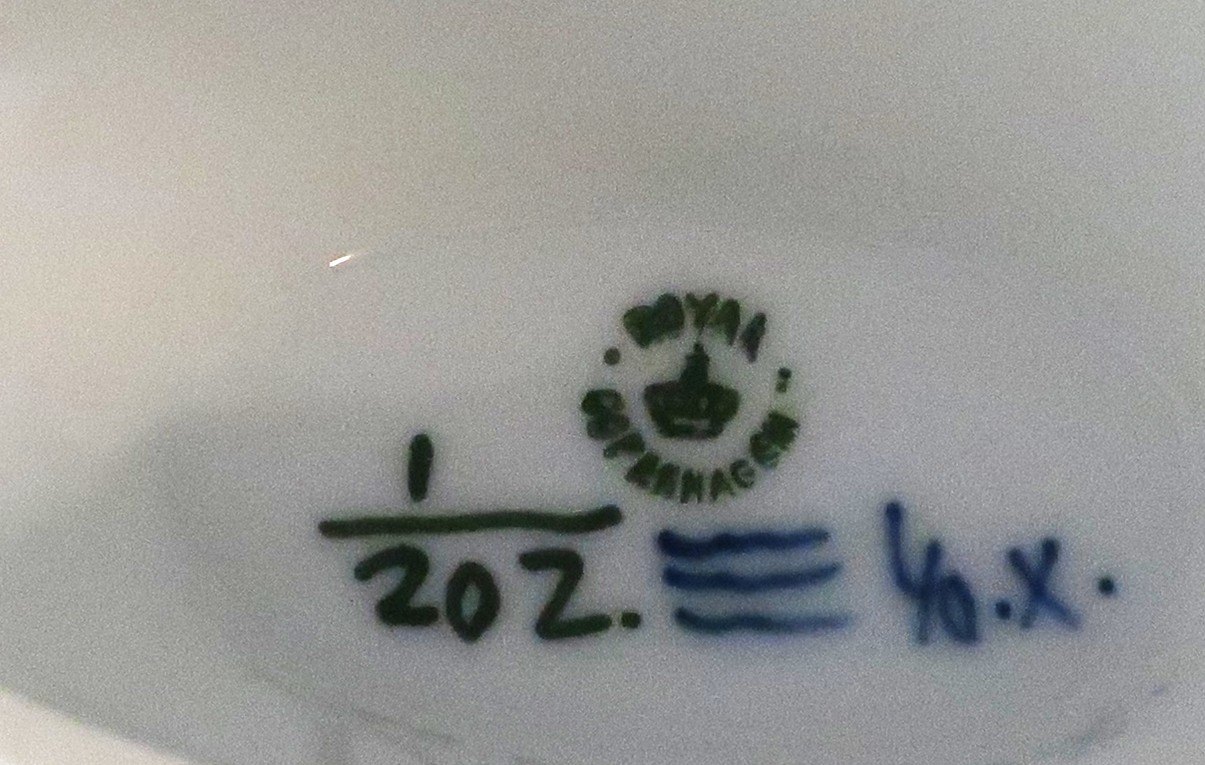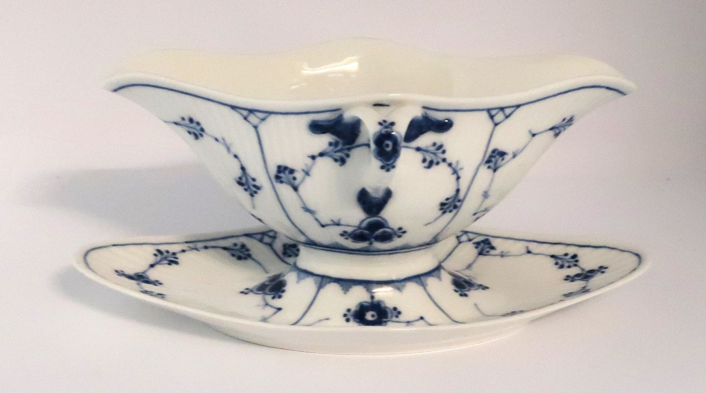 Royal Copenhagen. Musselmalet riflet. Sauceskål / sovseskål. Model 202. Længde 24,5 cm. (1 sortering). Produceret før 1923.