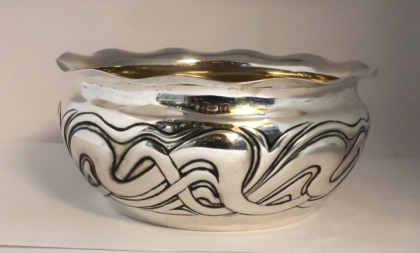 P. Hertz. Stor sølvskål (830). Højde 11 cm. Diameter 25 cm. Produceret 1904.