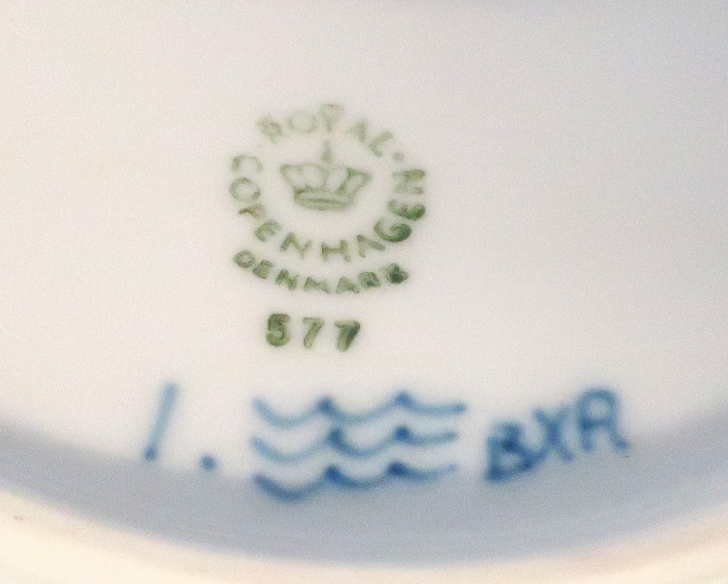 Royal Copenhagen. Musselmalet helblonde. Rund skål. Model 577 (1018). Højde 6 cm. Diameter 21 cm. (2 sortering)
