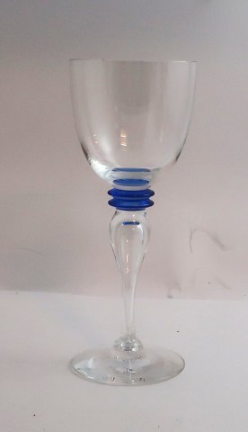 Attica, Royal Copenhagen med blå deco. Design Anja Kjær. Hvidvins glas. Højde 19,5 cm.