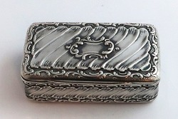 Michelsen. Sølv æske med fjederlukke (830). Længde 8 cm. Bredde 4,7 cm. Højde 1,9 cm. Produceret 1894. Proveniens Sorgenfri Slot.