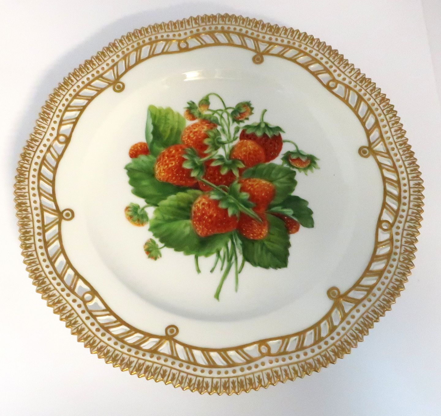 Royal Copenhagen Flora Danica, Obstteller. Mittagessen Platte mit durchbrochener kante. Entwurf # 429/3554. Durchmesser 23 cm. (1 Wahl).