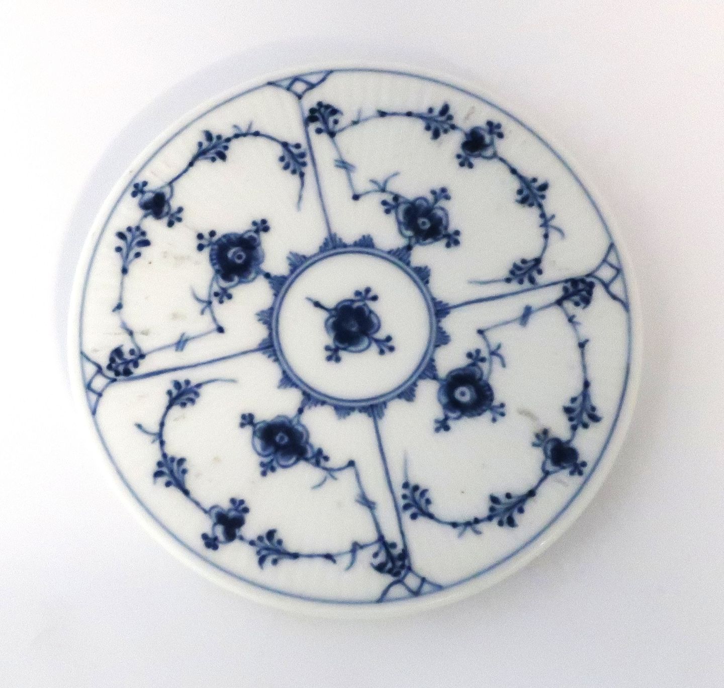Königliches Kopenhagen. Muselmalet, Gerippt. Untersetzer. Modell 452. Durchmesser 13 cm. (1 Wahl). Hergestellt vor 1923.