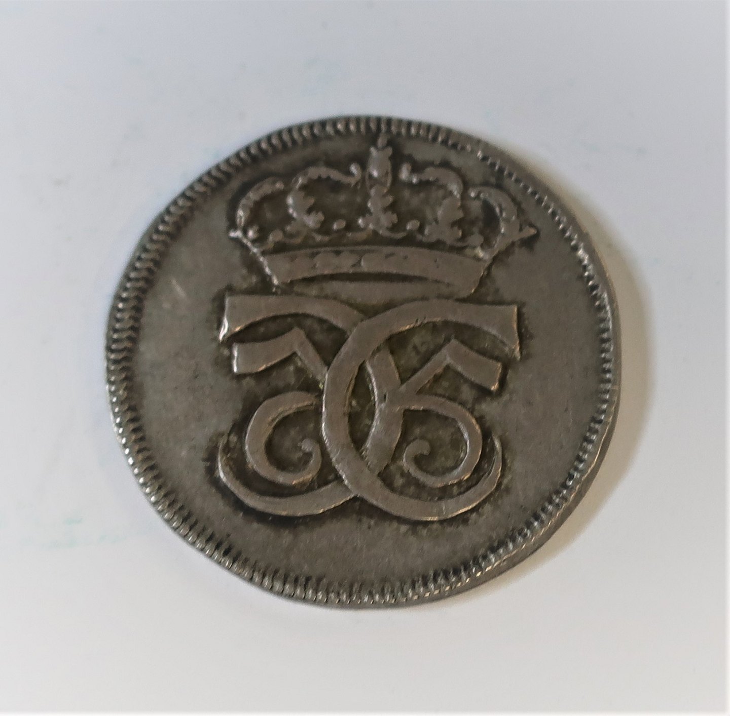 Sukkerske i sølv med mønt. Dansk 1 krone 1693 (Chr