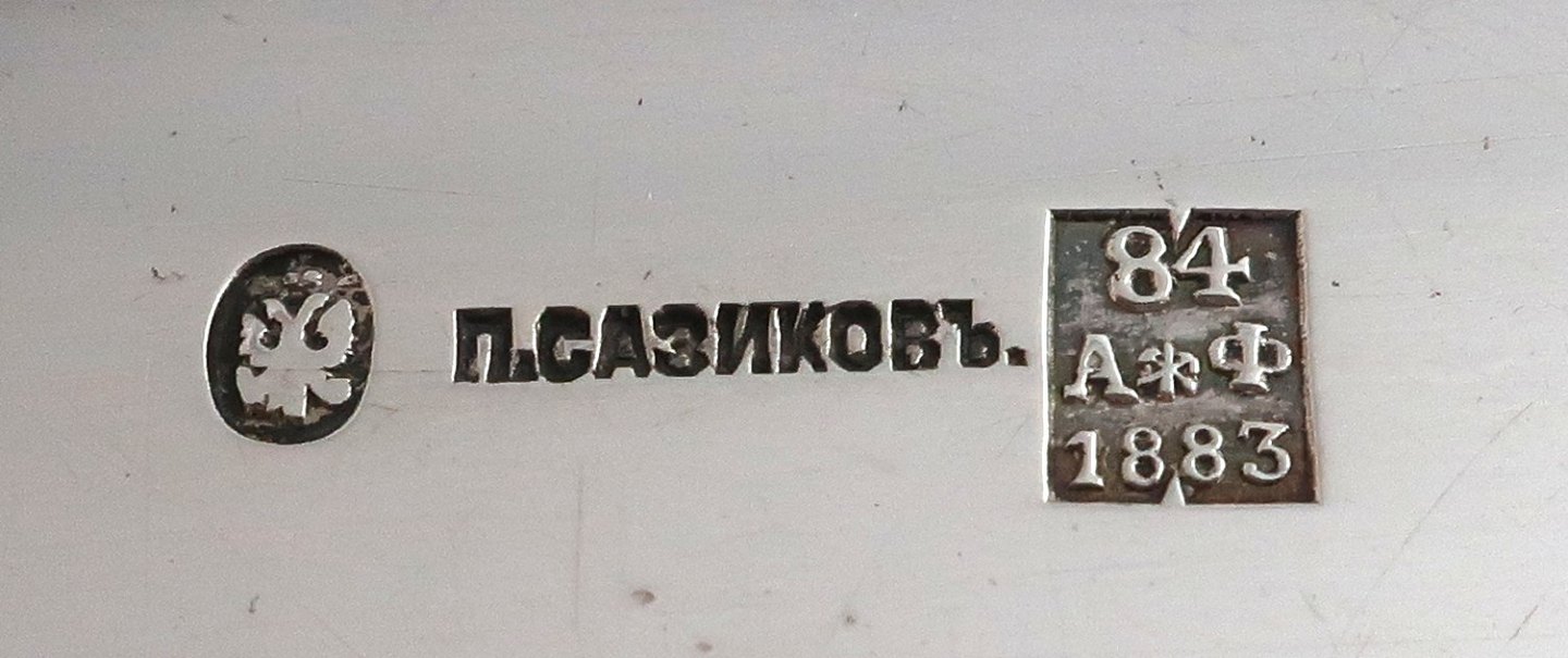 SAZIKOV, ST PETERSBURG. Sølv æske indvendig forgyldt 84 (875). Længde 17,5 cm. Bredde 5,3 cm. Højde 3,5 cm. Produceret 1883.