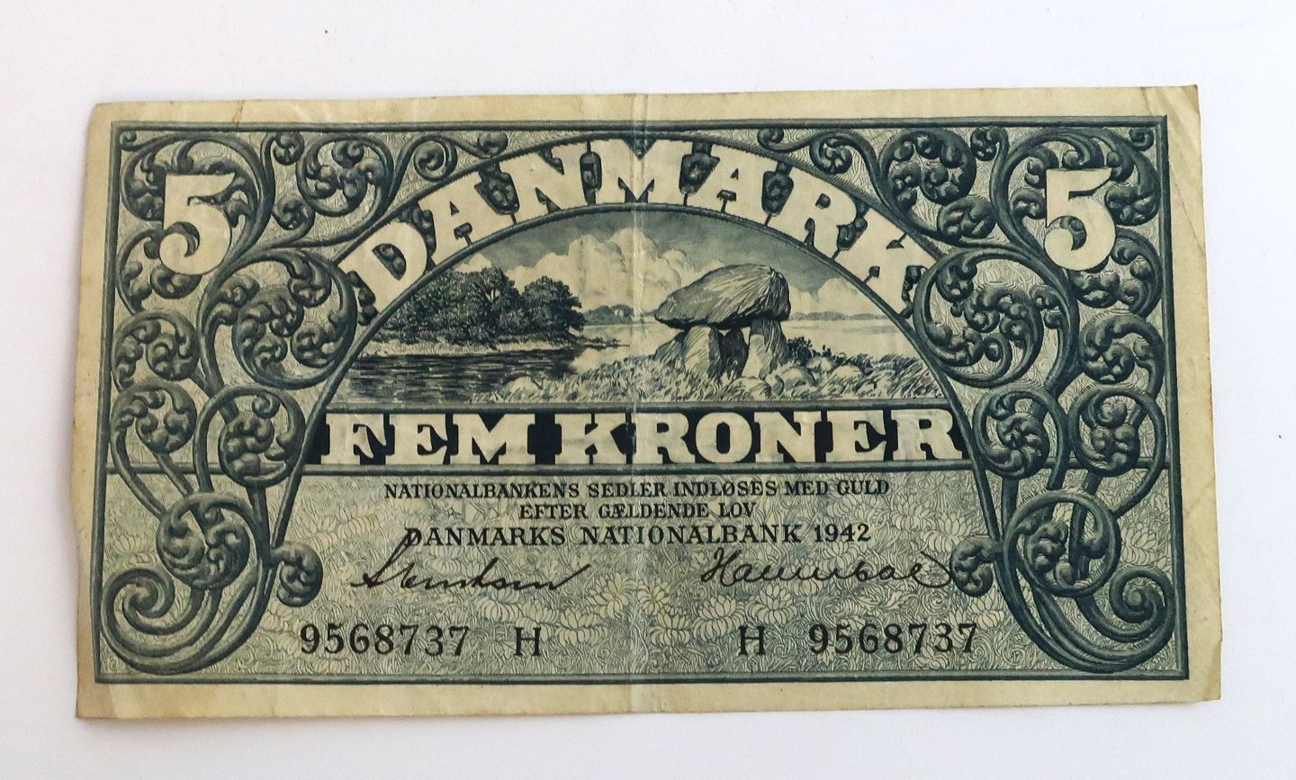 Danmark. Pengeseddel 5 kr. 1942 H.