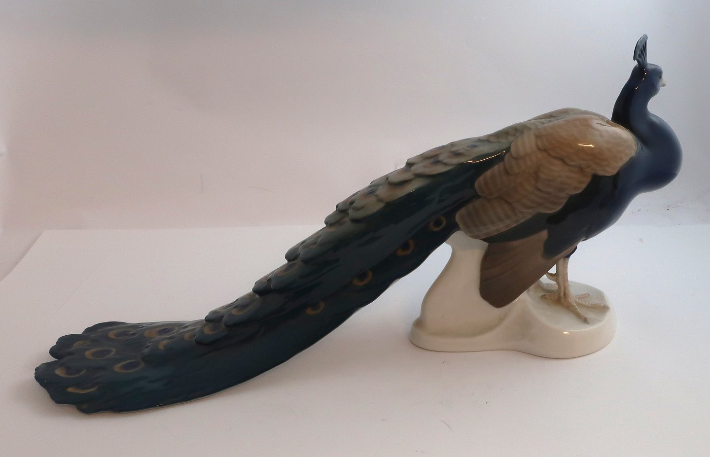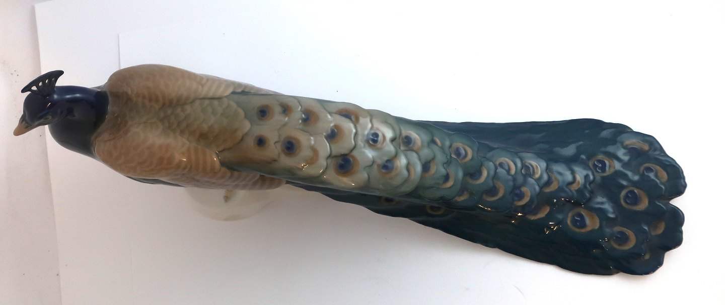 Bing & Grøndahl. Porcelænsfigur. Påfugl. Model 1628. Længde 40 cm. Højde 18,5 cm. (1 sortering).